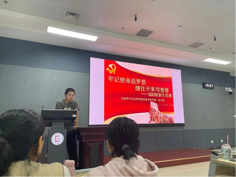 于2021年9月24日晚19:30在丰台校区日新楼102教室举行了本科新生党课培训,本次党课活动由本科生第一党支部书记支部书记黄子维和本科生第二党支部王天傲同志(主持工作)主讲,2021级全体新生参与了本次党课。