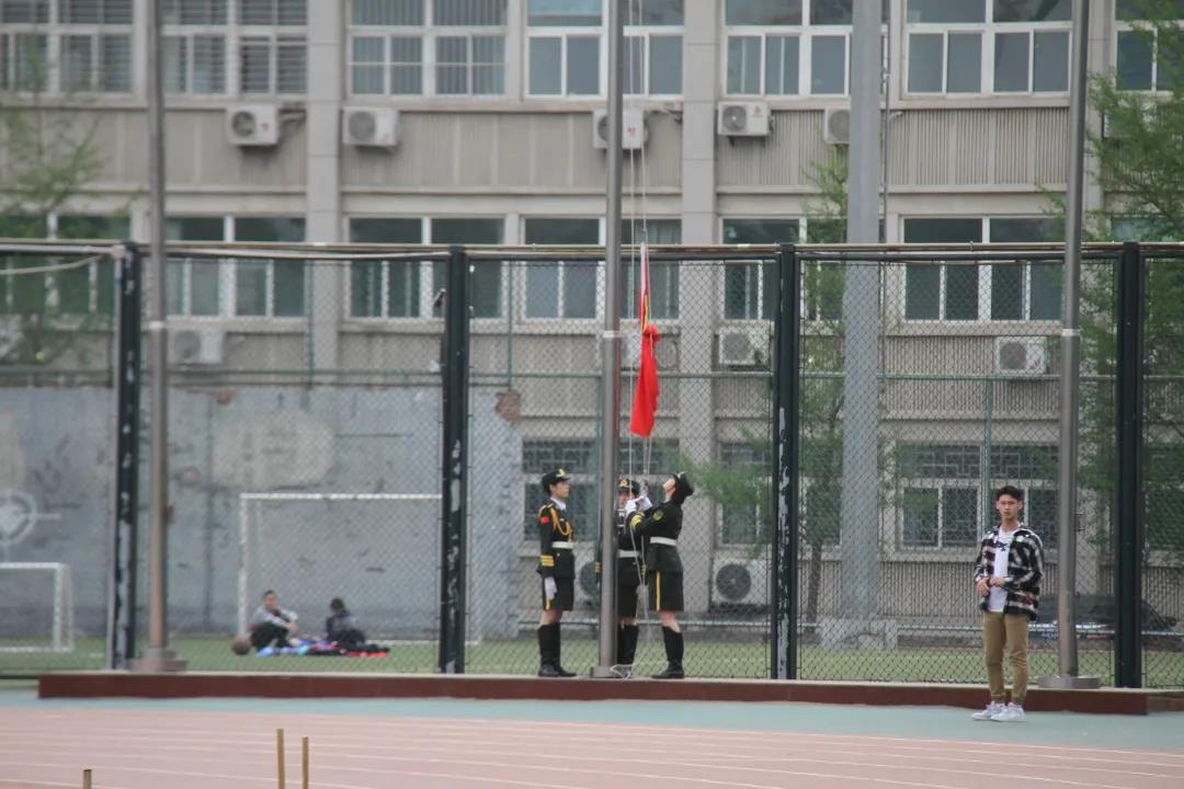 首先,⼤会第⼀项——国旗⽅阵、院旗方阵⼊场,升中华人民共和国国旗、全体师生奏唱中华人民共和国国歌。