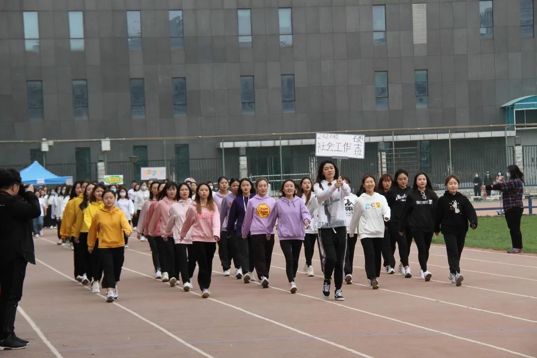 运动会闭幕式于下午17时40分举行。首先主持人宣布了各项比赛的成绩与精神⽂明奖获奖班级,党委书记王洁老师、党委副书记张肜肜老师以及出席闭幕式的学院各专业教师代表为获得精神文明奖的班级和团体总分前三名的班级颁发了奖状。
