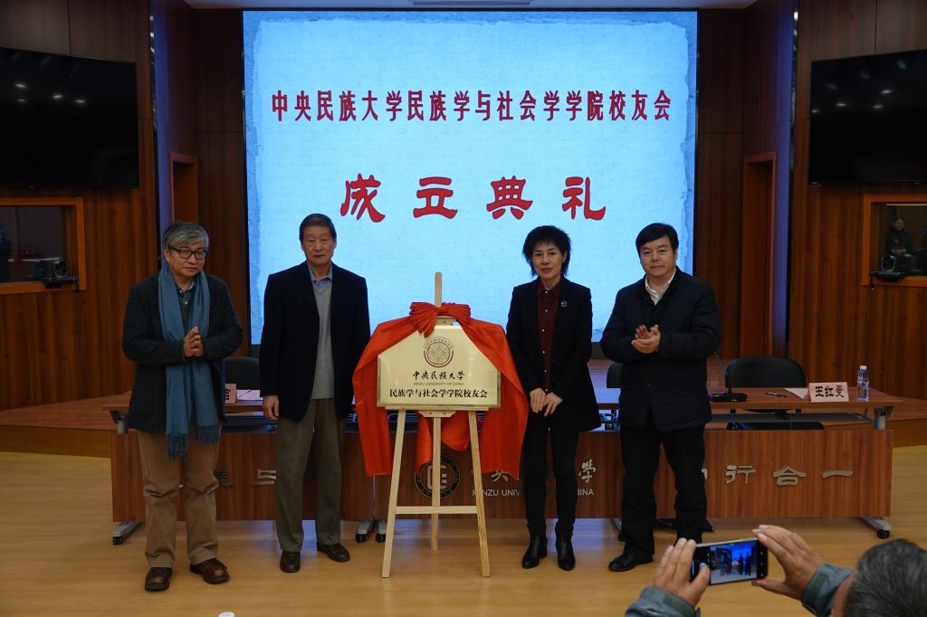 校友会进行揭牌。杨圣敏会长为麻国庆副会长颁发聘书,杨圣敏会长、麻国庆副会长为各位理事颁发聘书。